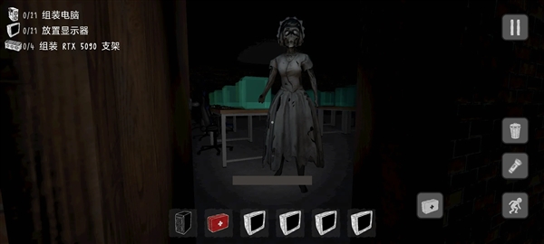 电脑组装噩梦手机版是一个非常有趣的恐怖冒险游戏,支持单人游玩,也可以进行最多四人联机,将把淘到的廉价配件运到你的新网吧,并组装电脑。一位执着的女管家会追捕你,她讨厌玩电脑游戏。你必须完成任务,然后立刻离开!这个房屋十分阴森恐怖,女管家也是长得非常诡异,靠近她就会有不好的事情发生,所以玩家要尽力躲开这样一个恐怖的敌人,然后和朋友一起努力,找到离开这里的办法。