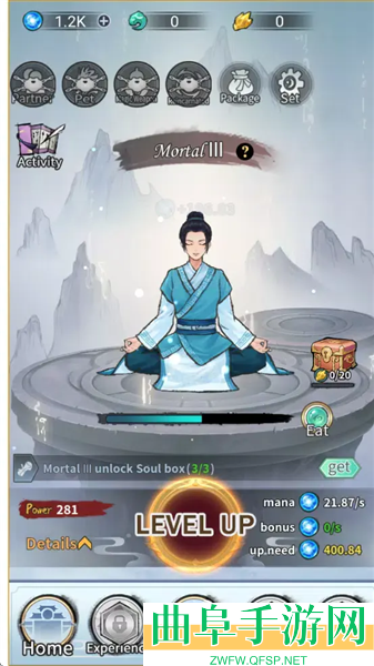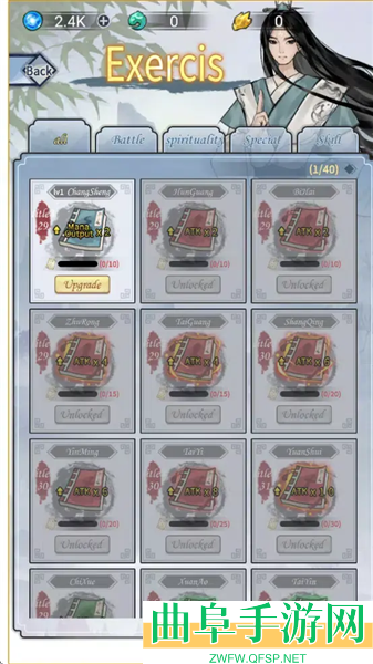 1.测试初始灵根,修炼对应五行功法,通过闭关吸收灵气提升境界。