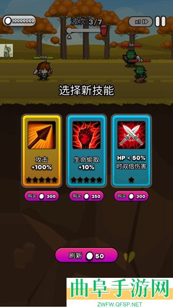 4.每一波解锁会随机获得三个技能,玩家需要消耗小球数量来购买一个技能强化自己。