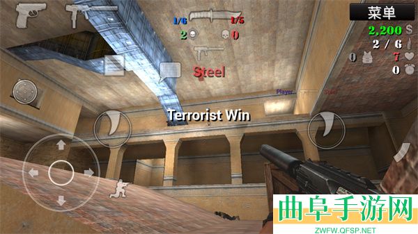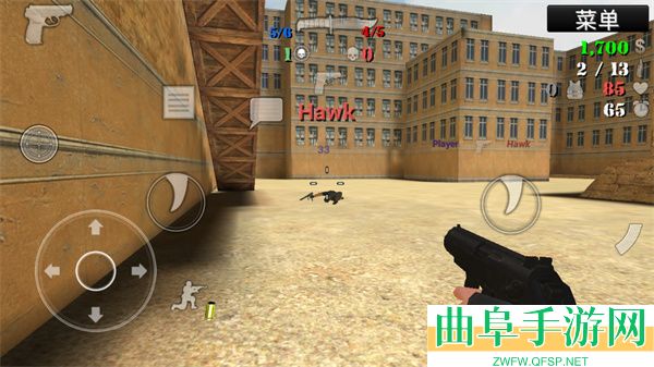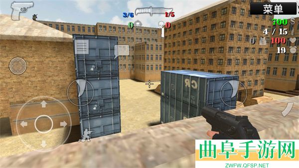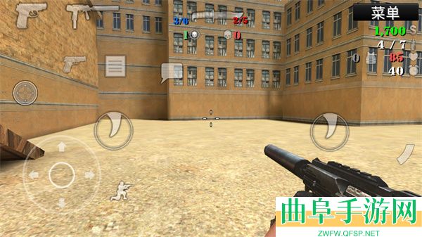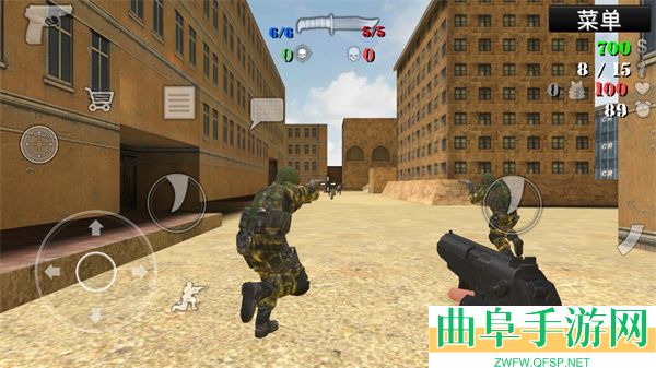 3、开始进入游戏,操作非常的简单,左边是方向和下蹲、购买等,右边则是攻击,其实两边都可以攻击,大家可以按照自己的喜好选择;