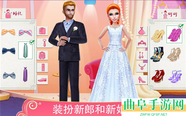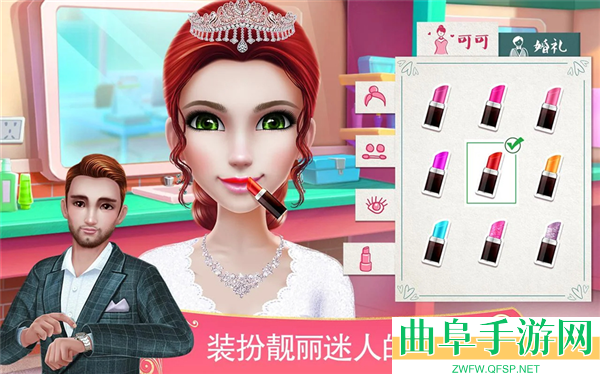 5、装扮整个婚礼派对 - 新娘,新郎,伴娘,伴郎。每一位都需要你专业的设计!为新娘挑选一个炫美的皇冠,为新郎挑选一件帅气的晚礼服。装扮完成后就带他们去美容沙龙吧!
