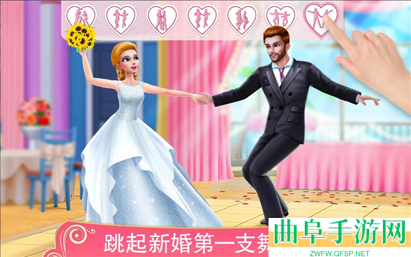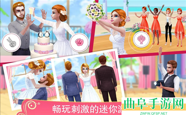 3、装扮美丽的新娘和帅气的新郎,精心布置婚礼场景,装饰美味的蛋糕,编排迷人的舞步。