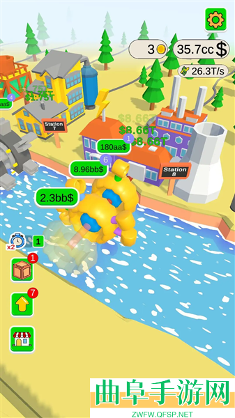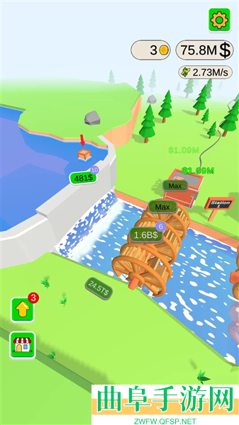 3、有时候也需要注意水库中时不时飘在水面上的盒子,里面会有辅助道具,加快水力发电机的时间。