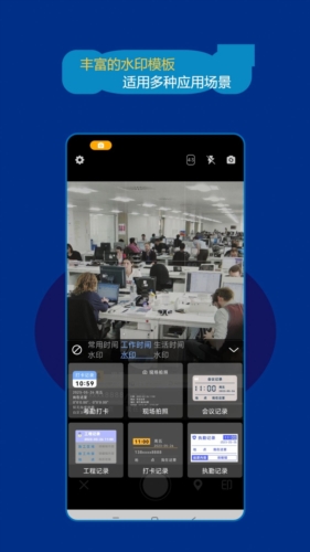 1、工作水印:水印内容包括时间、位置地点,同时支持对水印内容进行修改,可以描述工作内容,方便您的工作考勤打卡。