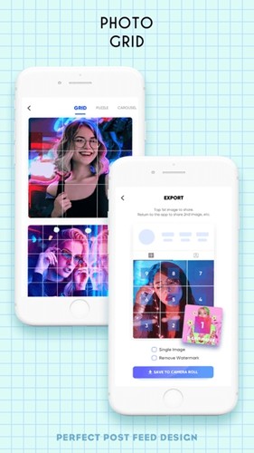 GridArt帮你制作拼图,切换不同布局,每一种布局都让你的拼图看起来独一无二。你还可以为每个格子添加不同的滤镜。