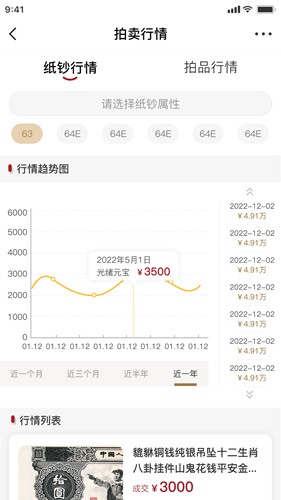 官银号会以曲线图的形式来呈现图拍卖会的行情变动状况,让你清楚的对其进行查看