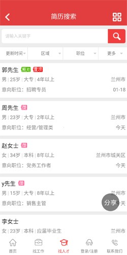 4、【职位搜索】按照地区搜索,精确找到心仪人才,心动职位。