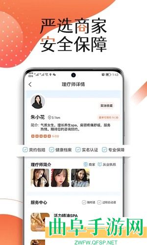 您可查看附近专业理疗师与商家的详细资料(距离、头像、从业经验、状态、评论),并选择适合的项目进行下单预约。