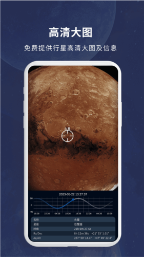 1、提供行星的高清大图,供用户免费查看,可以实时查看当前可见的星体信息。