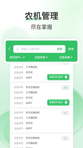 支持用户在线实时掌握相关的农机车辆,便捷的对其找作业。