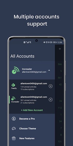 2、FocusReader 需要你拥有 Feedly、Inoreader 账号才可以使用,付费版本支持同时登录多个账号。