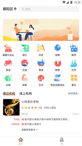 在“首页”中,可根据学科分类查找培训机构