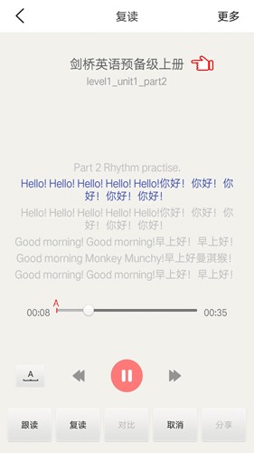 支持用户拖动复读进度条,便于用户可以从自己的薄弱环节进行复习;