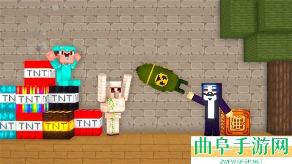 2.进入场景后,选择并使用不同角色(如TNT爆炸角色、黑客角色等),通过组合道具与动作触发特殊事件或剧情演出。