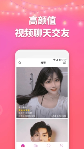 洽玩允许男性用户开通视频聊天功能的软件。在洽玩,你可以和高颜值帅哥美女视频聊天交友。